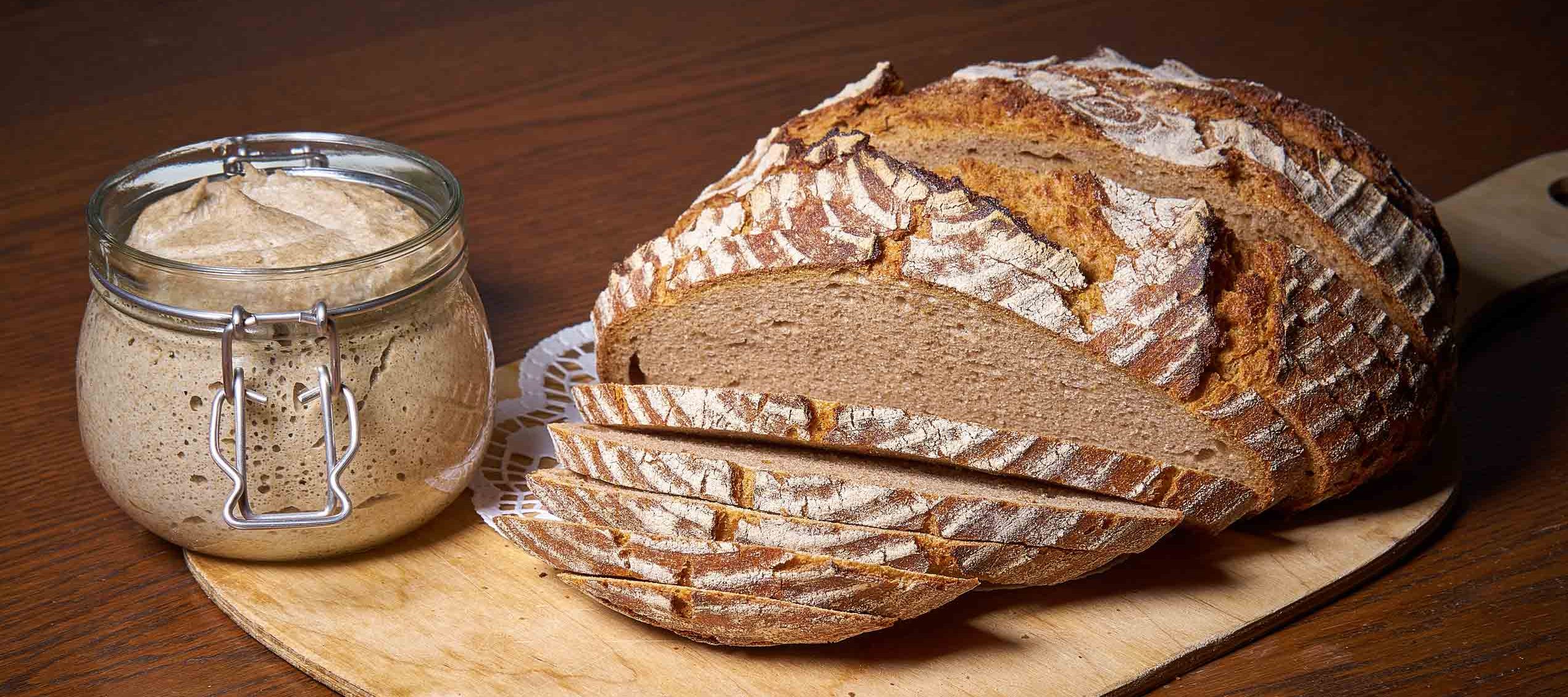 Wir verwenden für alle Roggenbrote unseren Natursauerteig aus Roggenvollkornmehl.